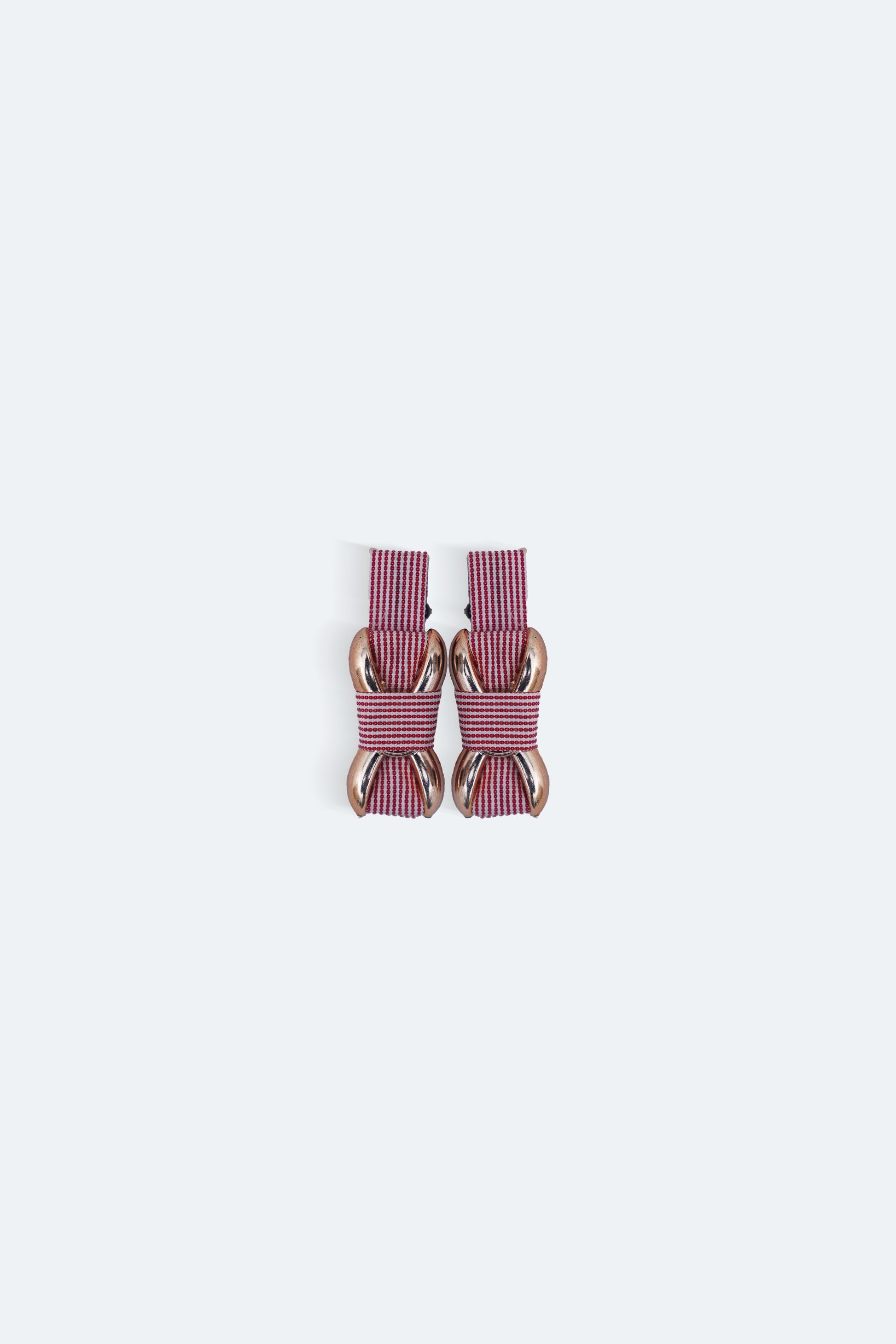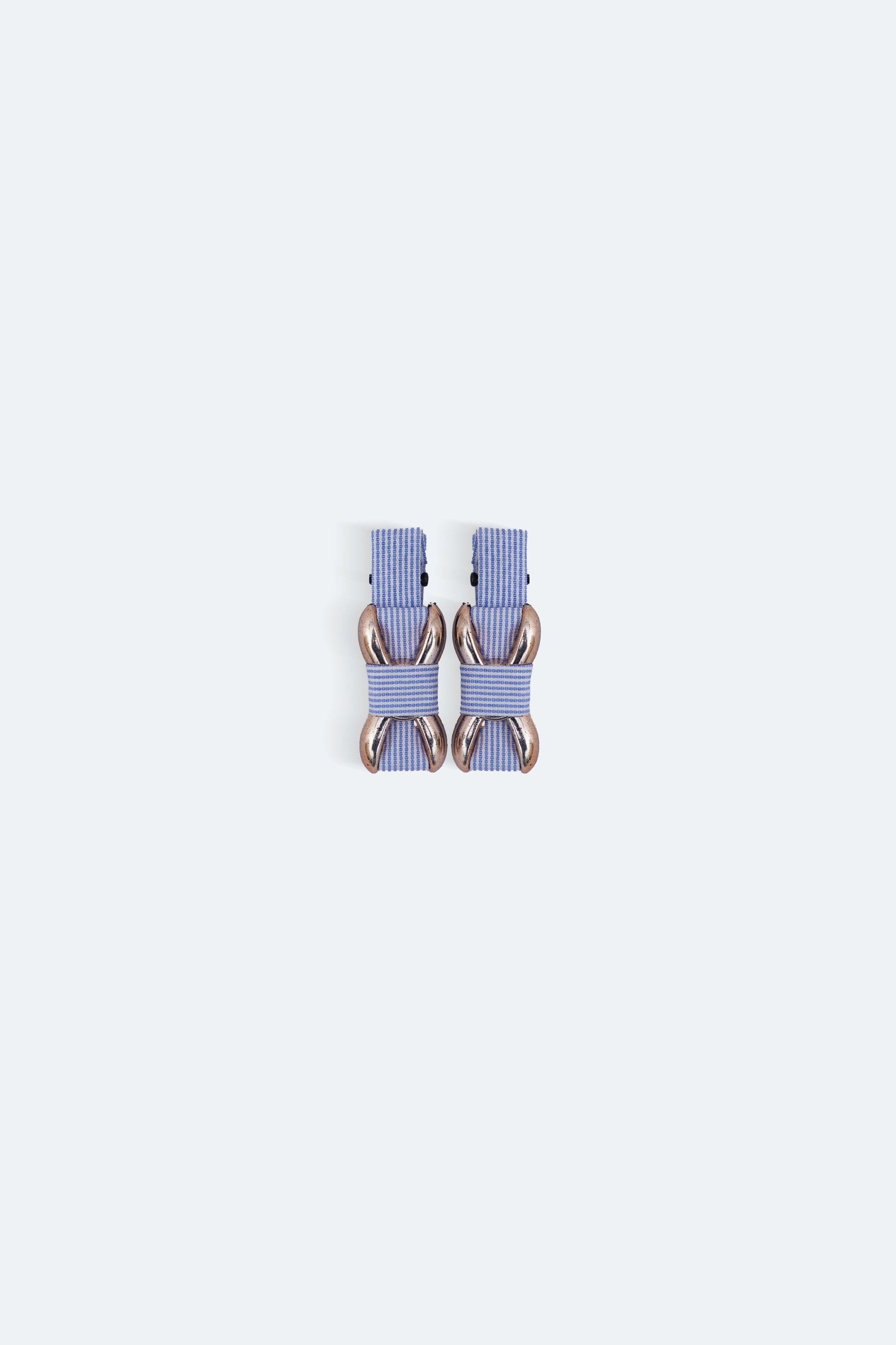Chic mini bow clips wrapped in soft ribbon with a metallic twist. Sleek, secure, and perfect for adding a polished touch to everyday looks.