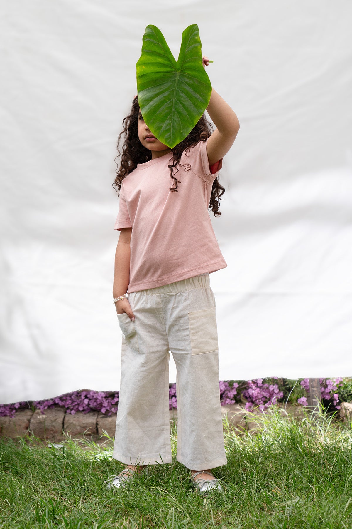 Cropped straight bottom pants. side pockets detail.